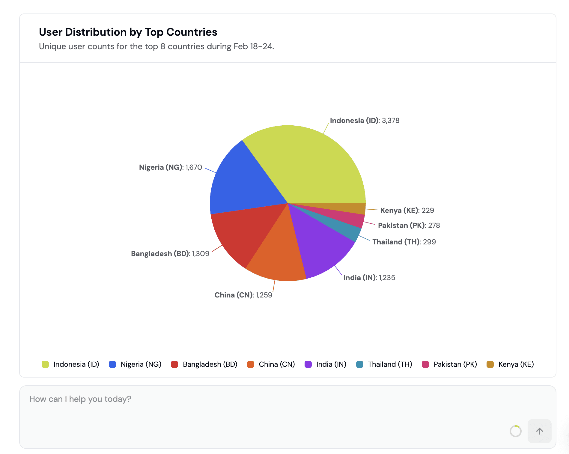 "What does my geographic distribution of users look like?" to understand where your audience lives.