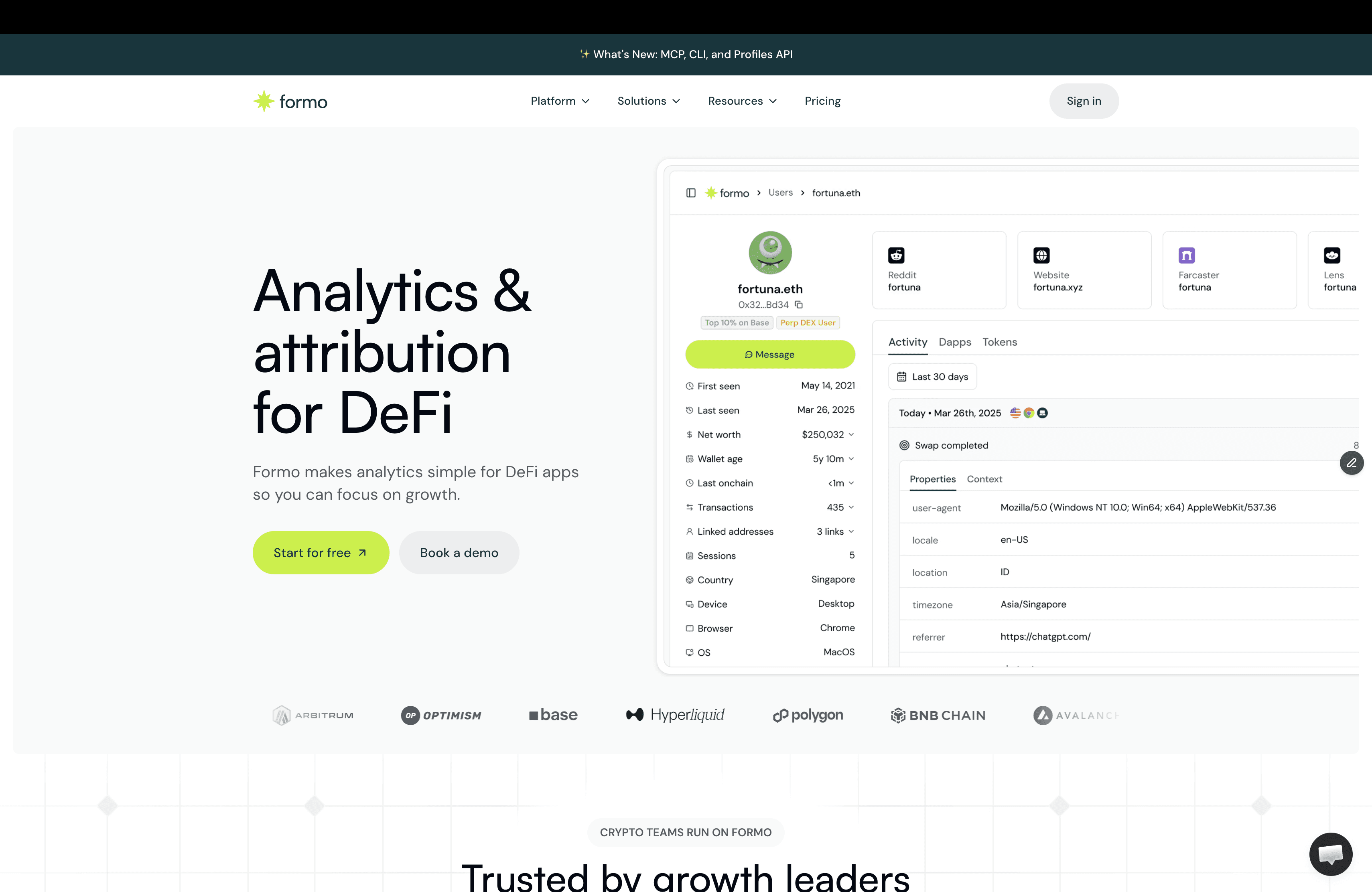 DeFi protocols benefit from comprehensive analytics platforms like Formo that track the full user journey