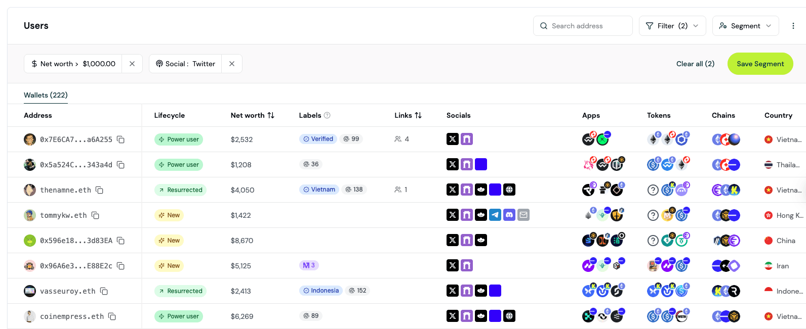 Wallet Segmentation: Identify your most active, loyal, and high-value users based on their onchain behavior.