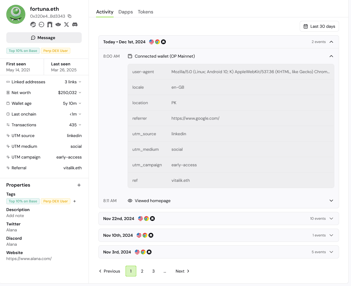 Multi-Chain Compatibility: Monitor user activity across multiple chains such as Ethereum, Solana, Base, and more — all in one place.