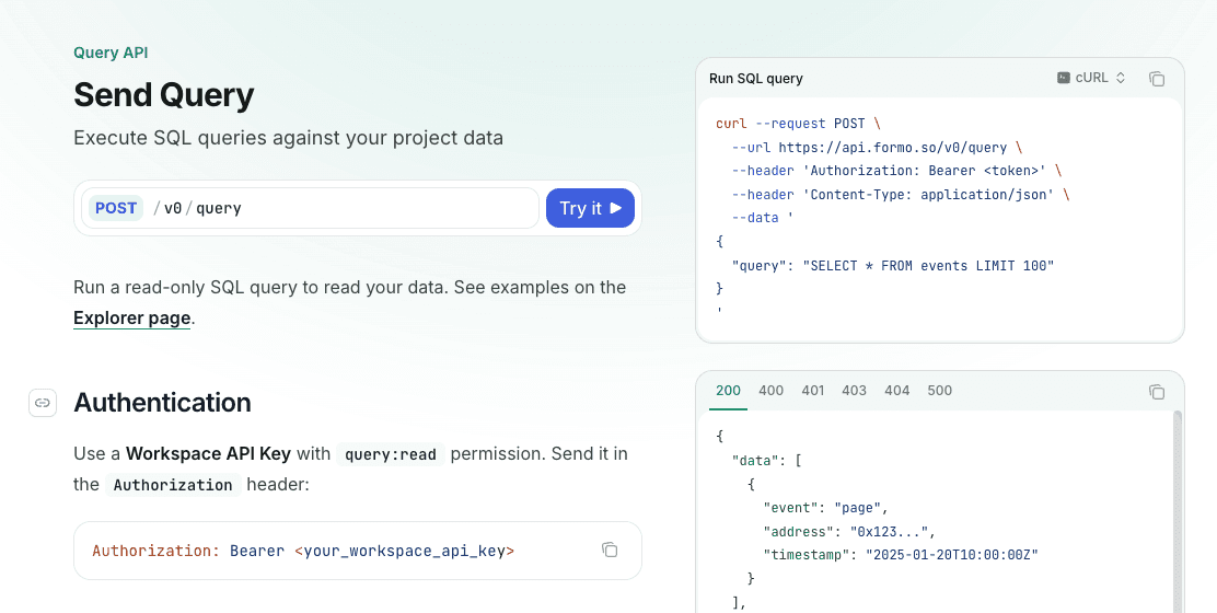 You can now run SQL queries to read your data from an API. With full SQL support as the Explorer, you can use the Query API to extract data for analytics and other use cases.