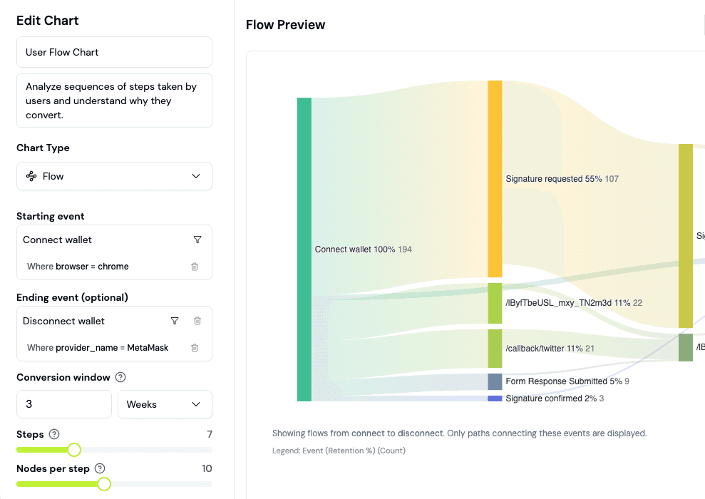You can now use user flow analysis to identify the most frequent paths taken by users to or from any event.
