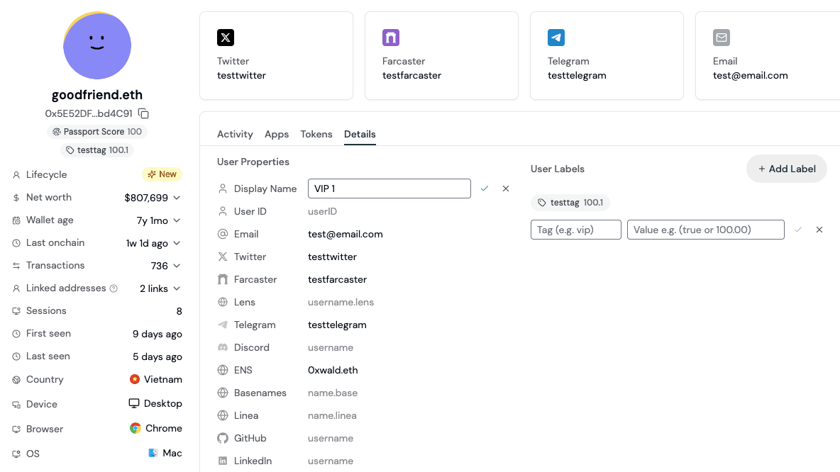 You can now add first-party user properties and custom user labels for wallet profiles, on the dashboard and the API.